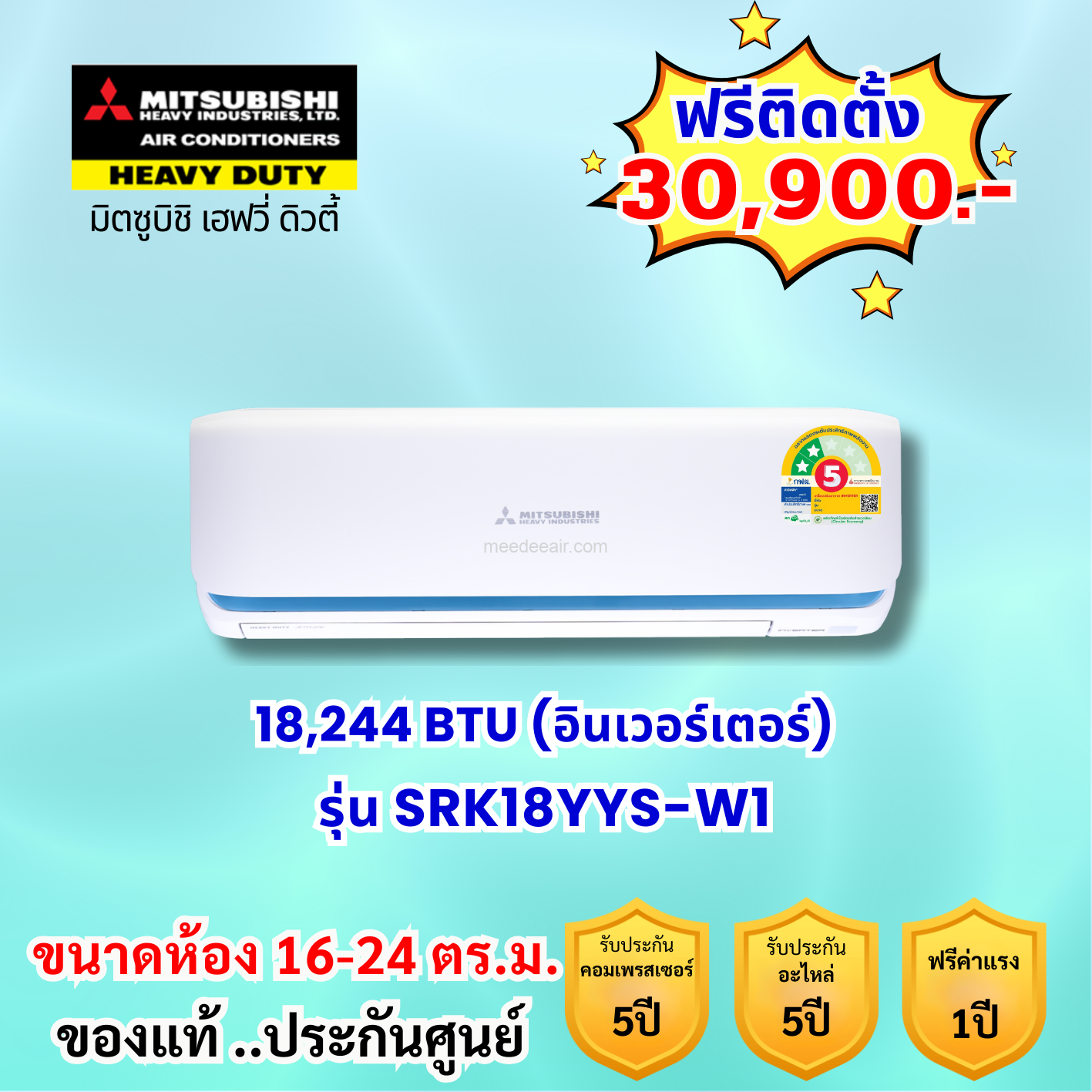 แอร์มิตซูบิชิ เฮฟวี่ อินเวอร์เตอร์ รุ่น SRK18YYM-W1 ขนาด 18086 BTU