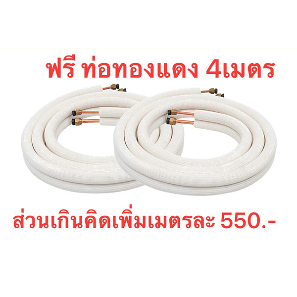 - แถมฟรี ท่อทองแดงหุ้มฉนวน 4 เมตร (เกินคิดเพิ่ม เมตรละ 550 บาท)
