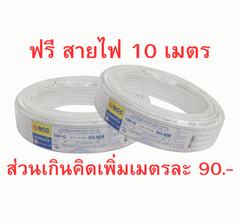- แถมฟรี สายไฟ 10 เมตร (เกินคิดเพิ่ม เมตรละ 90 บาท)