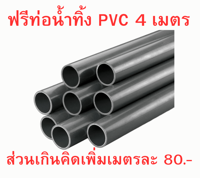 - แถมฟรี ท่อน้ำทิ้ง PVC 4 เมตร (เกินคิดเพิ่ม เมตรละ 80 บาท)
