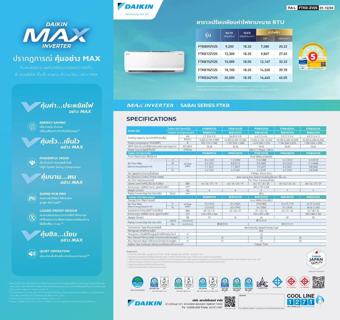 รุ่น FTKQ15YV2S ขนาดทำคว…