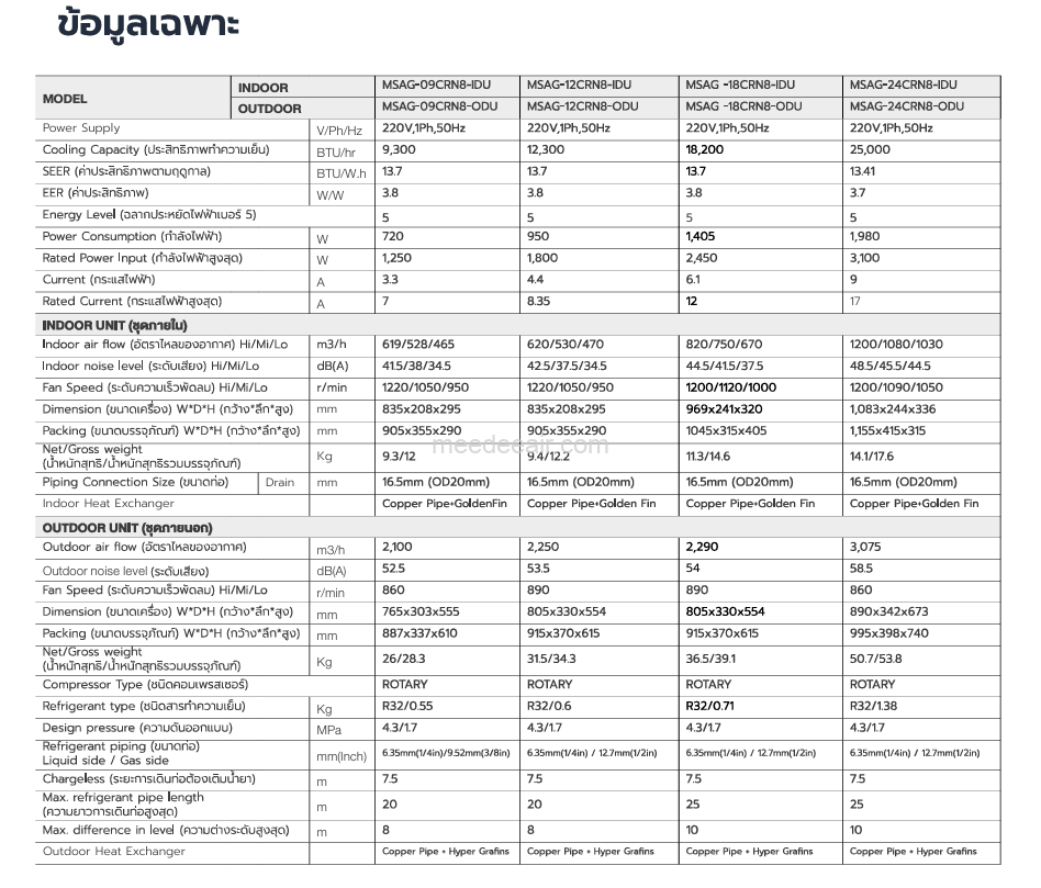 แอร์ไมเดีย รุ่น MSAG-24CRN8-IDU ขนาด 25000 BTU
