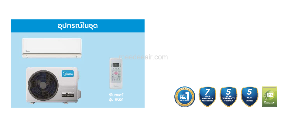 คอมเพรสเซอร์รับประกัน 7 ปี / อะไหล่อื่นๆ 5 ปี |