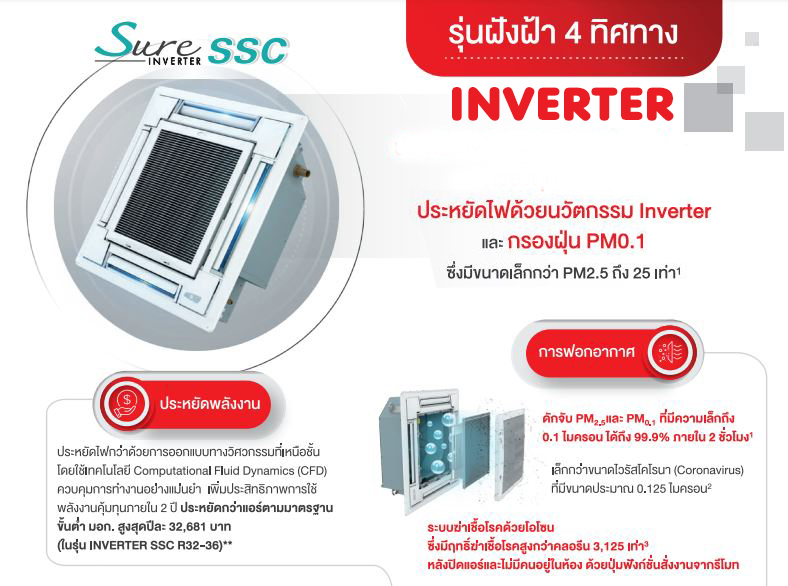 แอร์ซัยโจ เด็นกิ ชนิด 4 ทิศทาง Inverter รุ่น INVERTER SSC น้ำยา R32