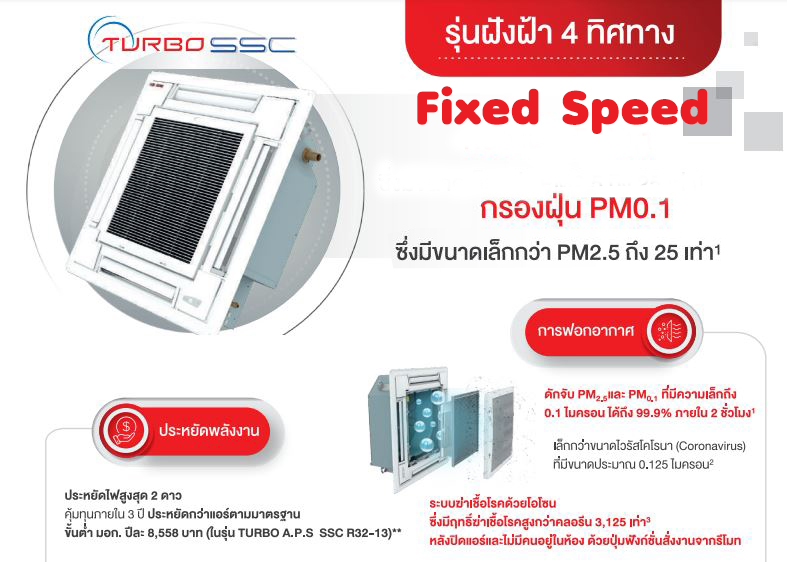 แอร์ซัยโจ เด็นกิ ชนิด 4 ทิศทาง Fix-Speed รุ่น TURBO SSC น้ำยา R32