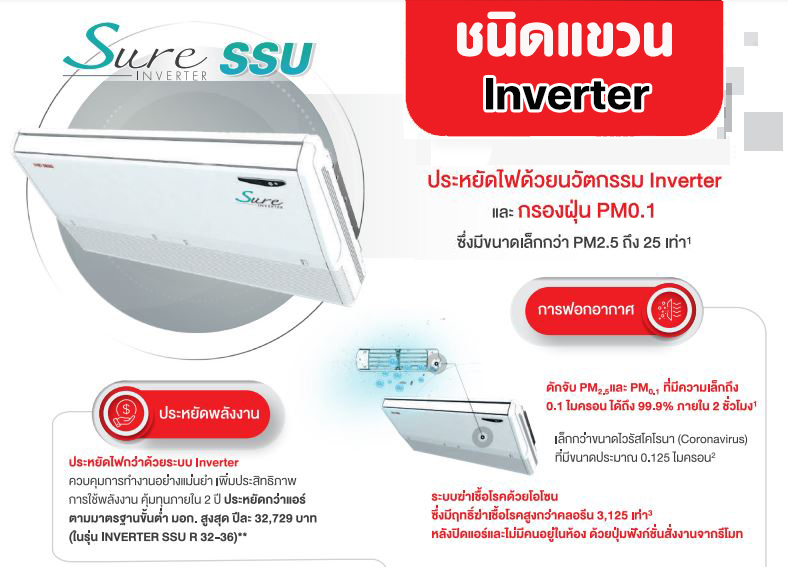 แอร์ซัยโจ เด็นกิ ชนิดแขวน Inverter รุ่น INVERTER SSU น้ำยา R32
