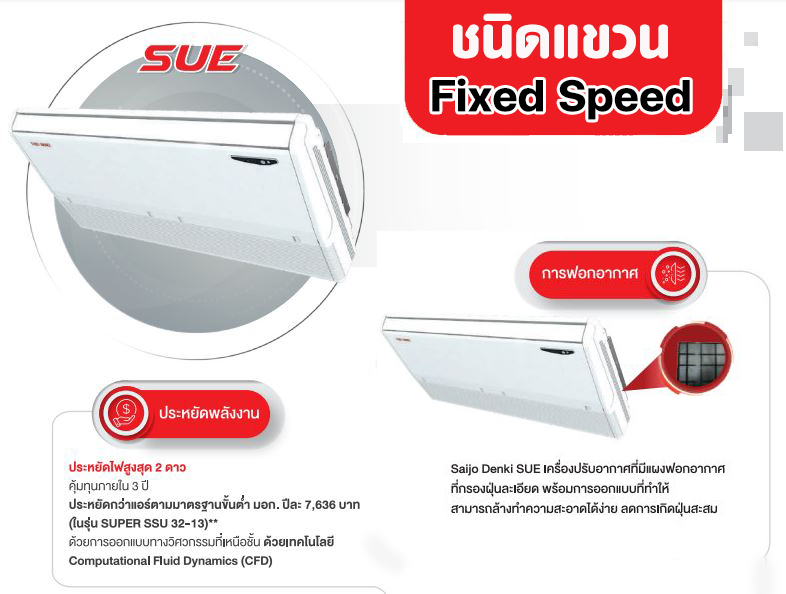 แอร์ซัยโจ เด็นกิ ชนิดแขวน Fix-Speed รุ่น SUPER SUE น้ำยา R32