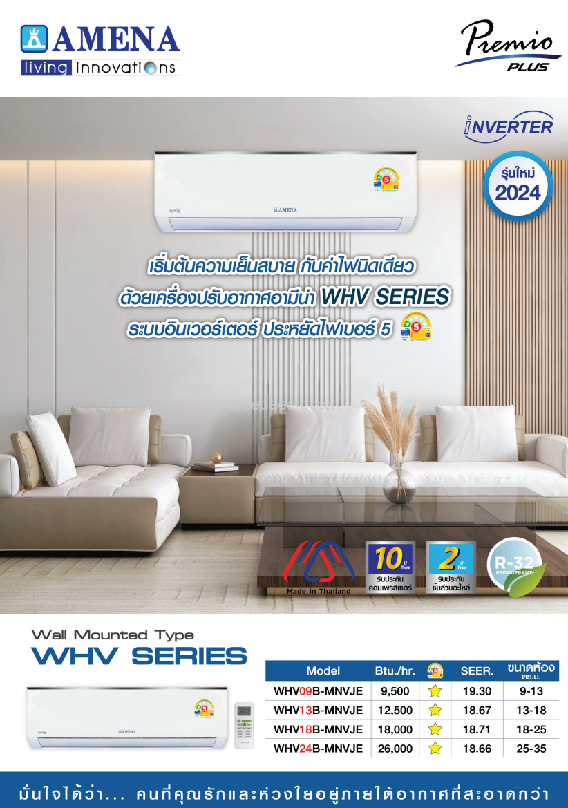 แอร์อามีน่า รุ่น WHV18B-MNVJE ขนาด 18000 BTU อินเวอร์เตอร์