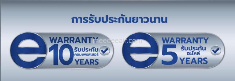 การรับประกัน คอมเพรสเซอร์รับประกัน 10 ปี / อะไหล่อื่นๆ 5 ปี